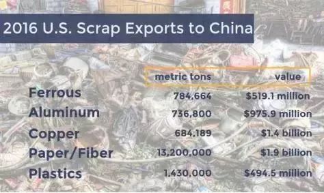 去年,他们光塑料废品就向中国出口了1,430,000吨,价值494,500,000美金。突然的禁令,明显一时半会儿吃不消。